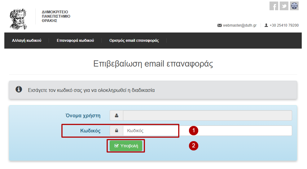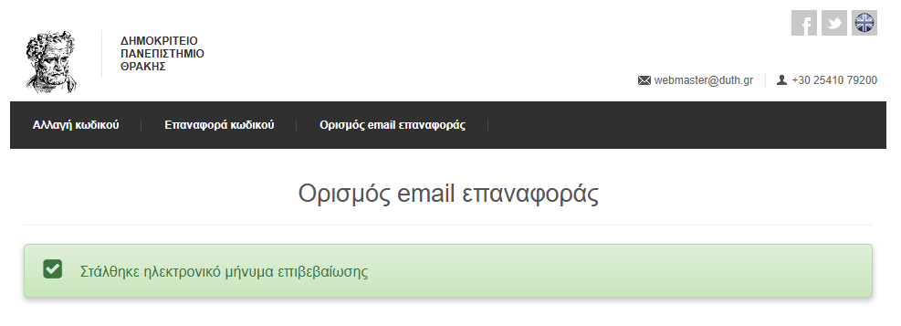 Η διεύθυνση email που θα επιλέξετε δεν μπορεί να είναι διεύθυνση του Δημοκρίτειου Πανεπιστημίου Θράκης.