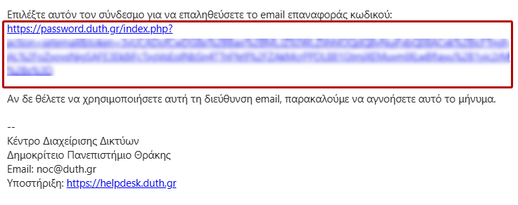 5. Συνδεθείτε στο email επαναφοράς που δηλώσατε και στο μήνυμα που έχει σταλεί από την Υπηρεσία Διαχείρισης Κωδικού ΔΠΘ, κάντε κλικ στον σύνδεσμο επαλήθευσης.