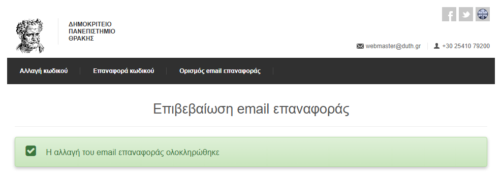 7. Θα σας εμφανιστεί το μήνυμα ότι η αλλαγή του email επαναφοράς ολοκληρώθηκε με επιτυχία.
